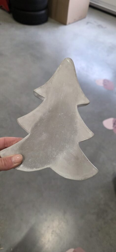 Mooie betonnen kerstboom. Er wordt een naam of korte tekst in gegraveerd. Dik genoeg om goed recht te kunnen staan.