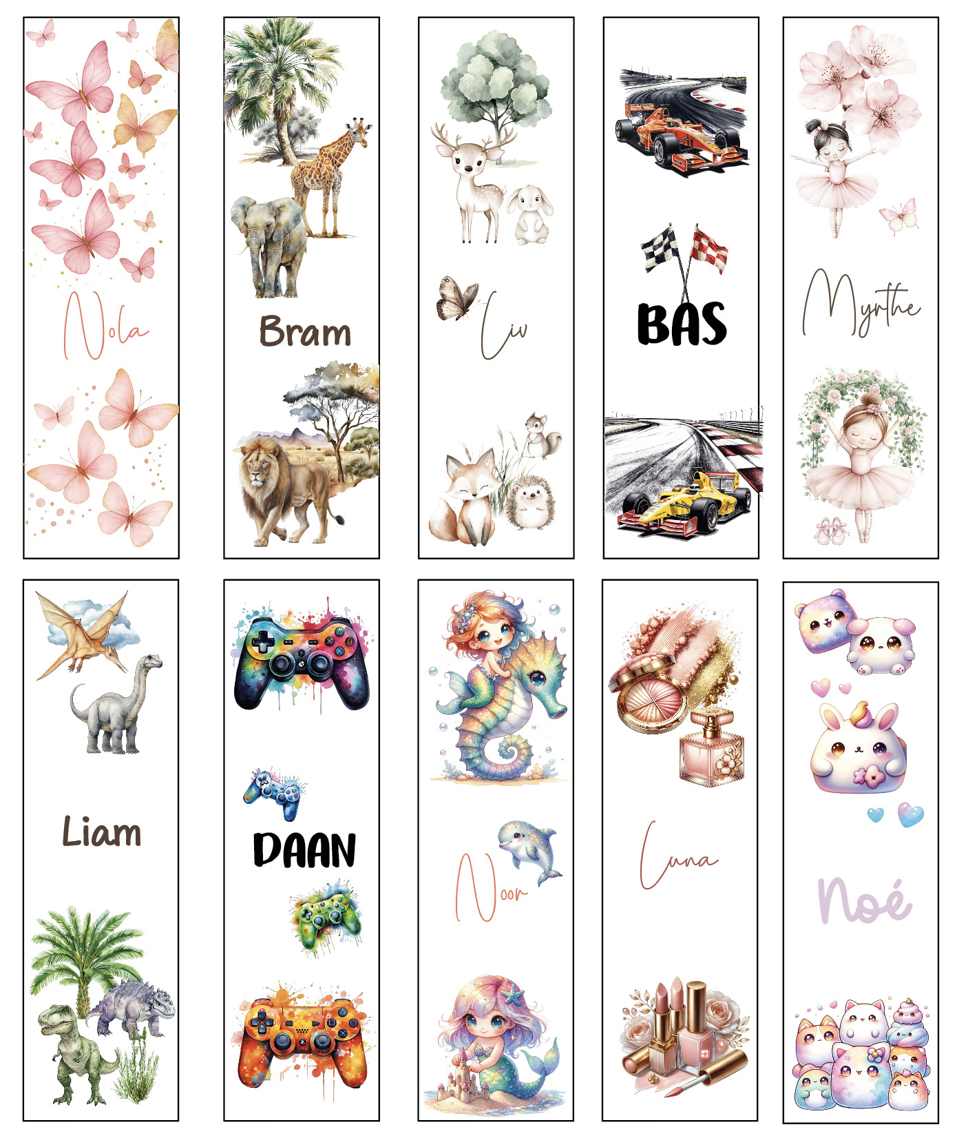 Een fijne boekenlegger, gepersonaliseerd met naam en in een thema dat jouw kind leuk vindt!