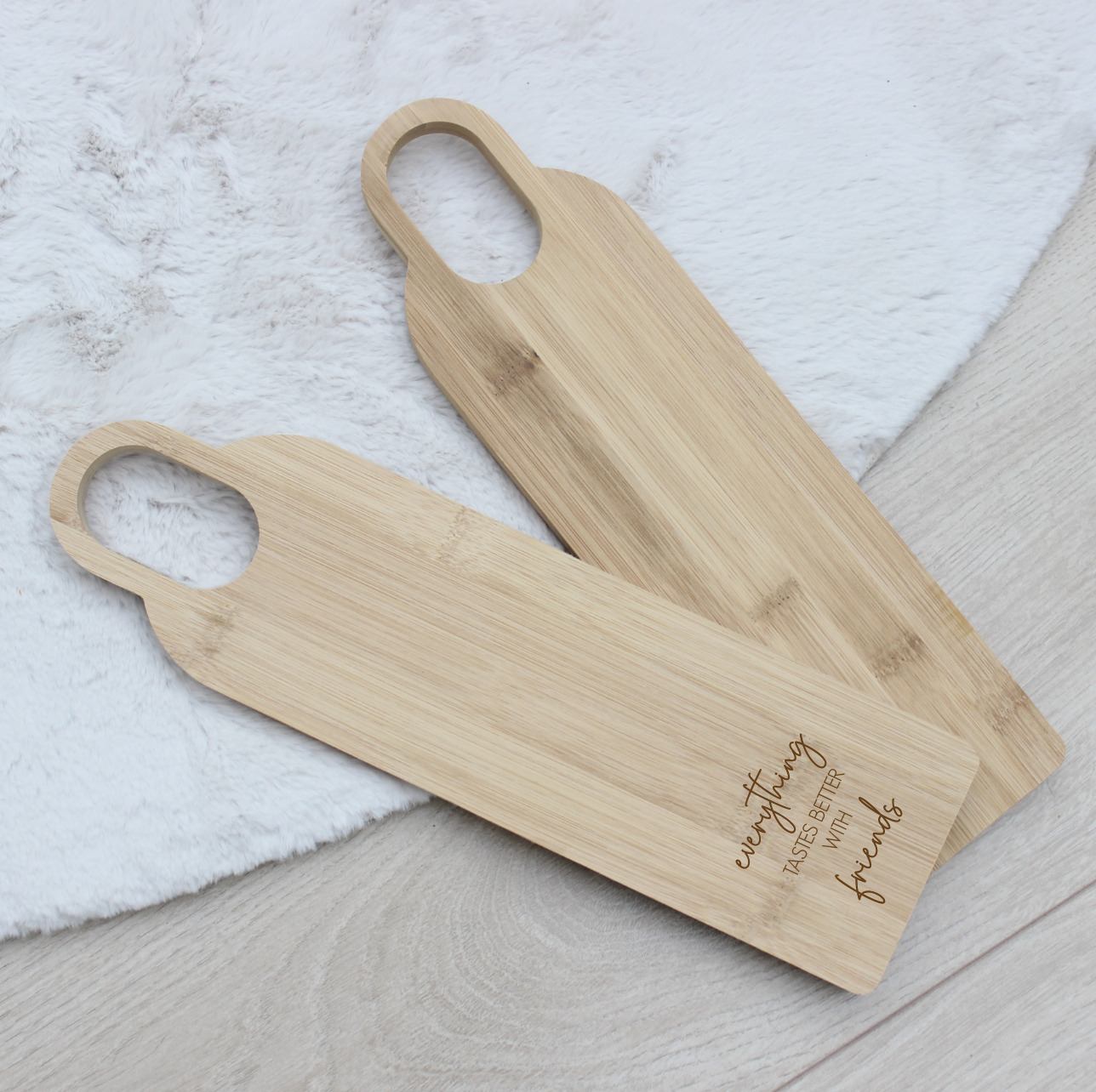 Bamboe heeft is gestreept (bamboehout is altijd gemaakt van aan elkaar geperste stroken bamboe) en de gravering kan dan ook verschillend zijn qua donker/licht. Dit hoort bij de natuurlijke uitstraling van hout.