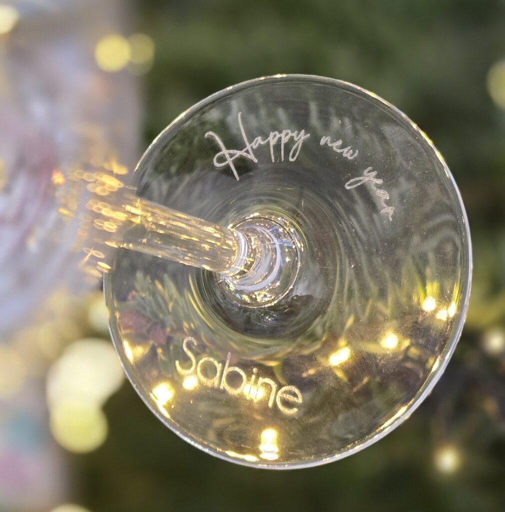 Een wijnglas met een eigen tekst in het voetje! Graveer een naam, een tekst, een quote, namen.. je verzint het zelf!