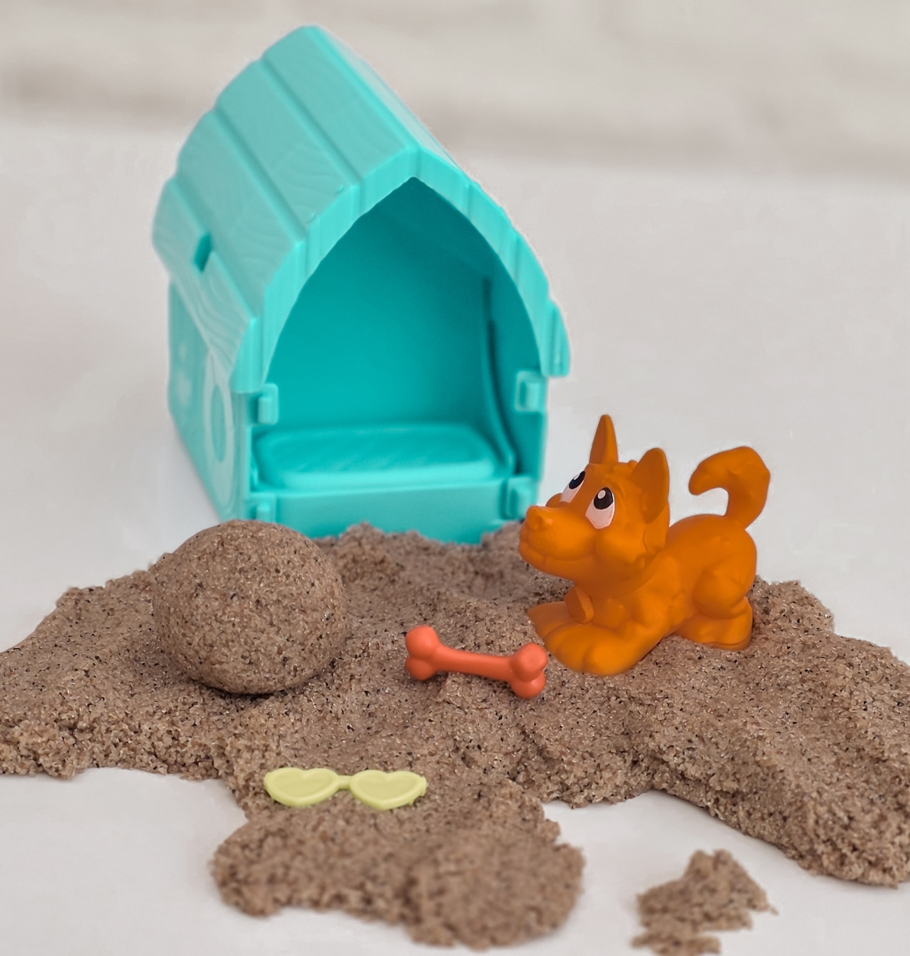 Een super leuke kleine set, volledig gevuld met kinetisch zand (ideaal om binnen mee te spelen), een hondje, een hok dat je open kunt klappen en enkel kleine details. Je weet van te voren niet welke kleine dingetjes in het hok zitten. dat is een verrassing.