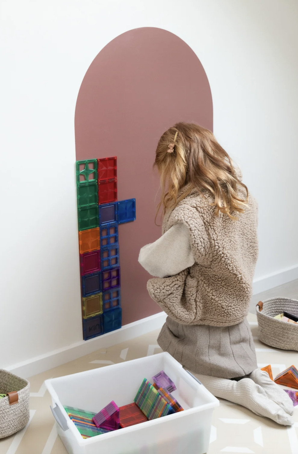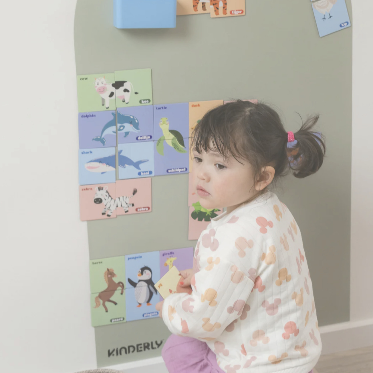 Kinderly Magnetisch Behang is speciaal ontworpen voor lichtgewicht, platte kindermagneten en zorgt voor veilig en plezierig speelplezier. Let op: ons magnetische behang heeft niet dezelfde magnetische kracht als een koelkast, waardoor niet alle zware of volumineuze magneten zullen blijven plakken. Sommige merken magnetische tegels hechten goed, terwijl andere mogelijk niet sterk genoeg zijn om te blijven zitten. Voor de beste ervaring raden we aan om lichtgewicht magnetisch speelgoed of objecten met sterke magneten te gebruiken, omdat zwakke of zware magneten mogelijk niet compatibel zijn.