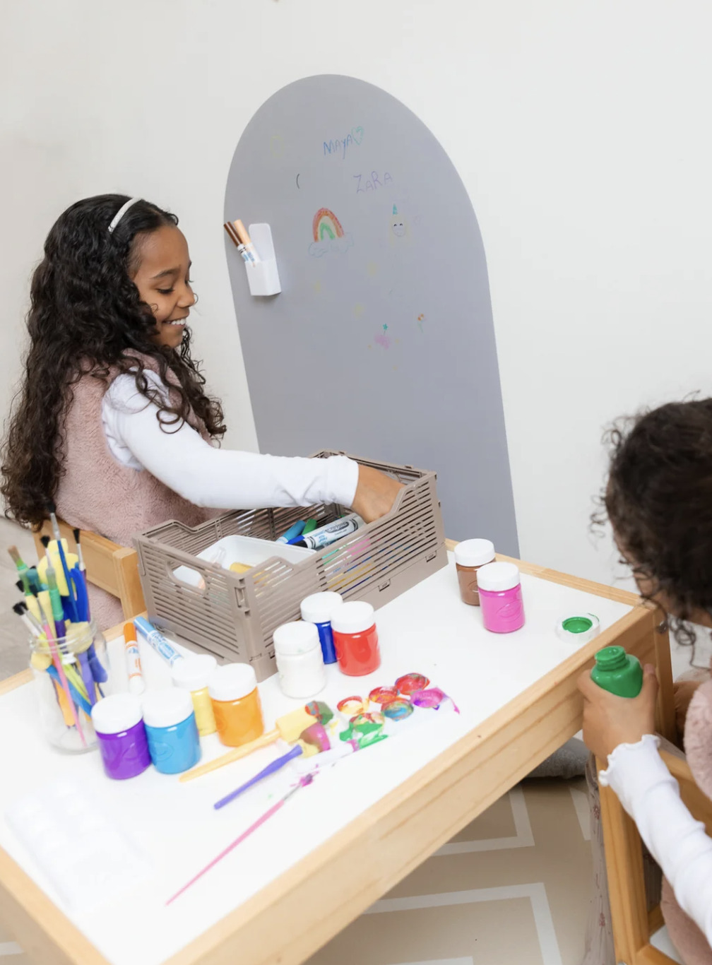 Hij is geschikt voor krijt, lichtgewicht magnetisch speelgoed, uitwasbare verf en whiteboardstiften. Zo zijn de mogelijkheden eindeloos en het zorgt voor uren speelplezier.
