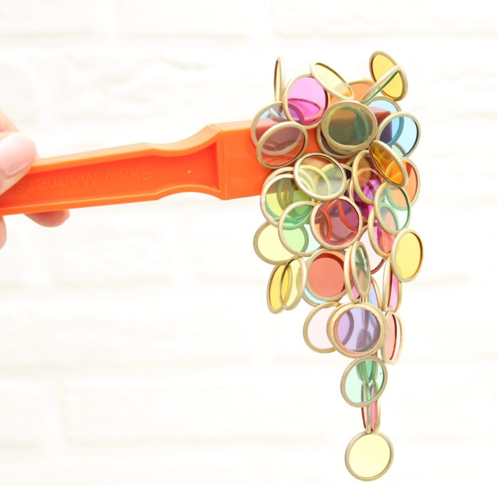 Haal er metalen chipjes mee uit zand of rijst, vis metalen muntjes uit het water. Zoek tussen jouw eigen speelgoed wat van ijzer is en wat niet, de mogelijkheden zijn eindeloos!