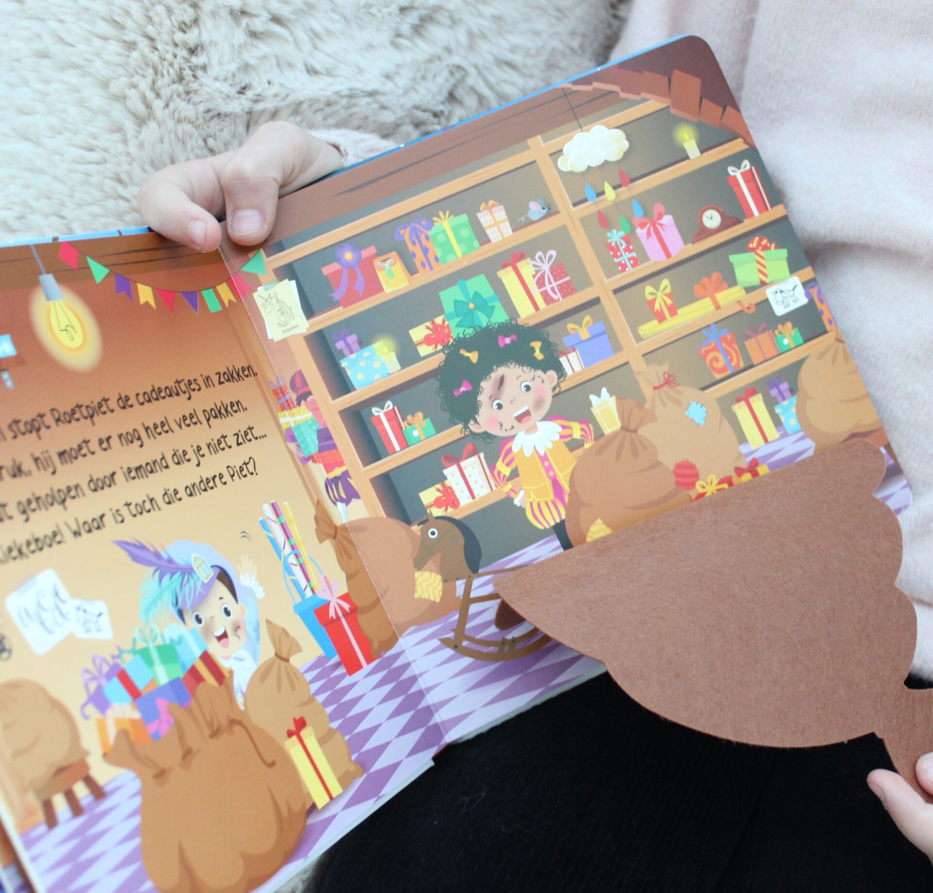 Een super vrolijk Sinterklaasboekje met flapjes. Heel leuk om te lezen met de allerkleinsten. Als ouder kun je het boekje voorlezen en jouw kindje kan de flapjes weg vouwen om te kijken wat er achter het flapje zit. Een interactieve activiteit voor jouw kindje, niet alleen leerzaam maar ook super leuk!