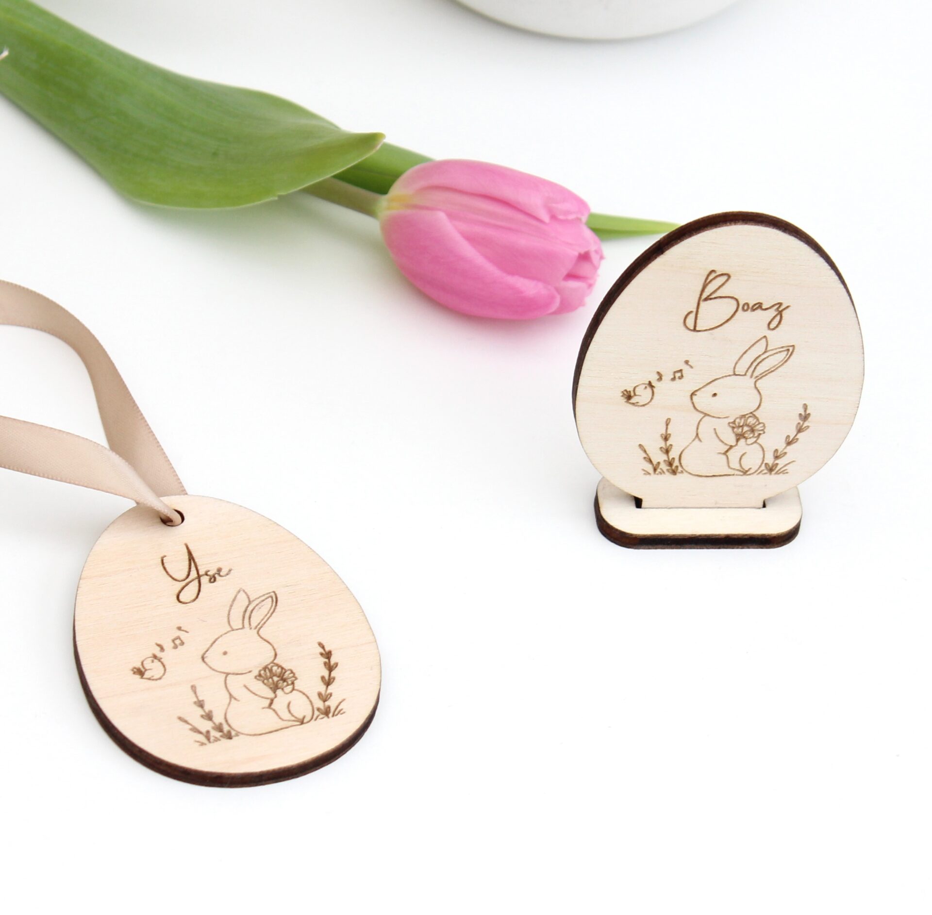 Of heb je juist geen paastakken in huis, maar wil je wél die extra paassfeer? Dan is de gepersonaliseerde houten paasdecoratie op voetje echt ideaal!