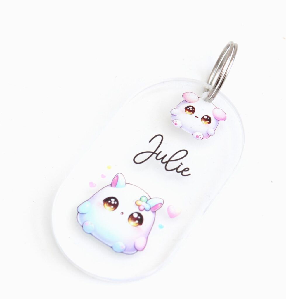 Dit is de perfecte hanger voor aan een schooltas, een sporttas, een gymtas of een zwemtas: een sleutelhanger met jouw naam er op en jouw favoriete thema.