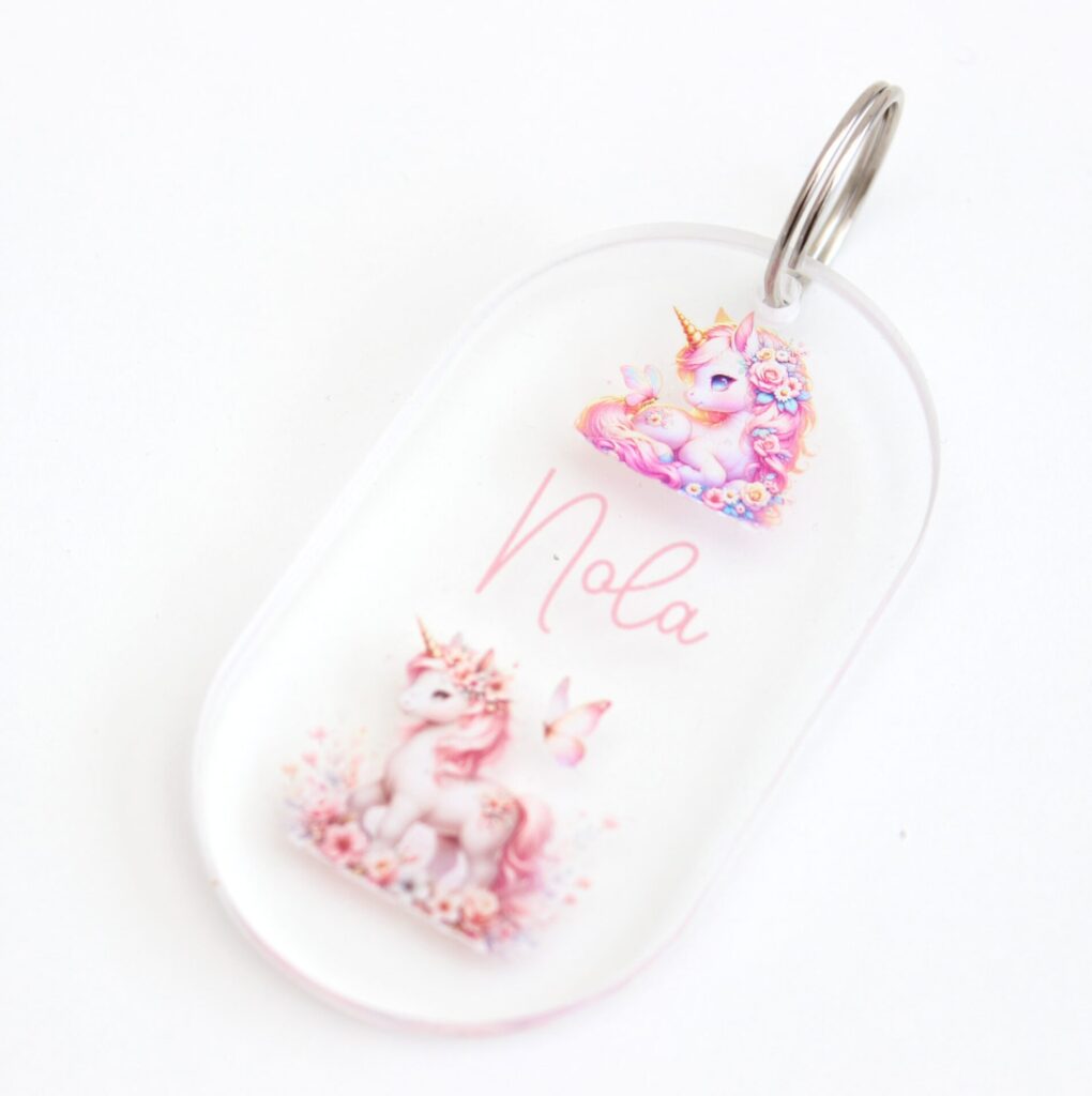 Laat de naam van jouw kind printen op deze super stevige sleutelhanger van plexiglas, in het thema dat bij jouw kind past. Van dino’s tot gamen en van unicorns tot zeemeerminnen, er is voor ieder wat wils.