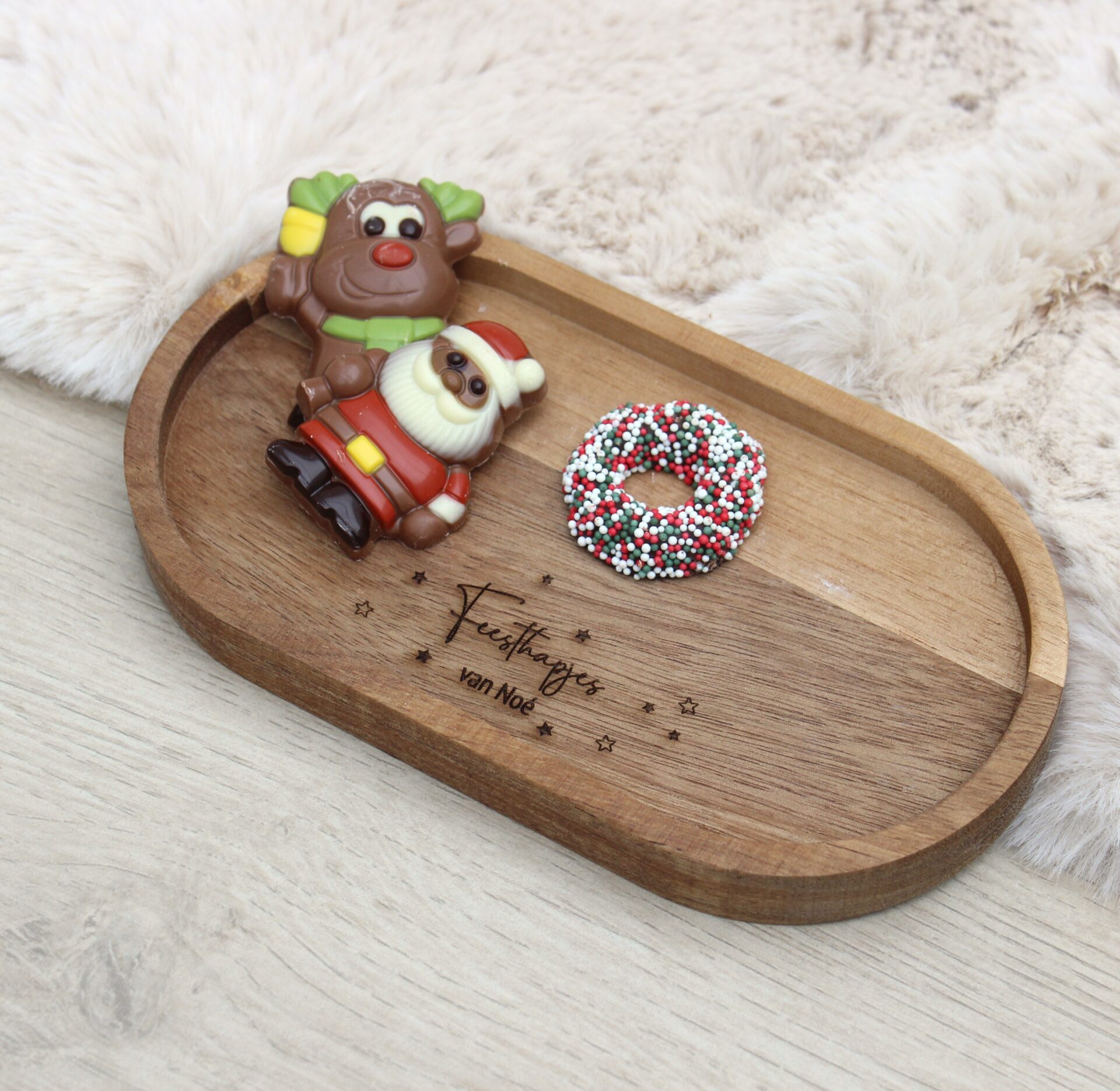 Je kunt het plankje gebruiken met kerst, maar natuurlijk ook de rest van het jaar. De tekst kun je zelf aanpassen. Je kunt er dus ook van maken: Lekkers van.., Snoepjes van.. etc.