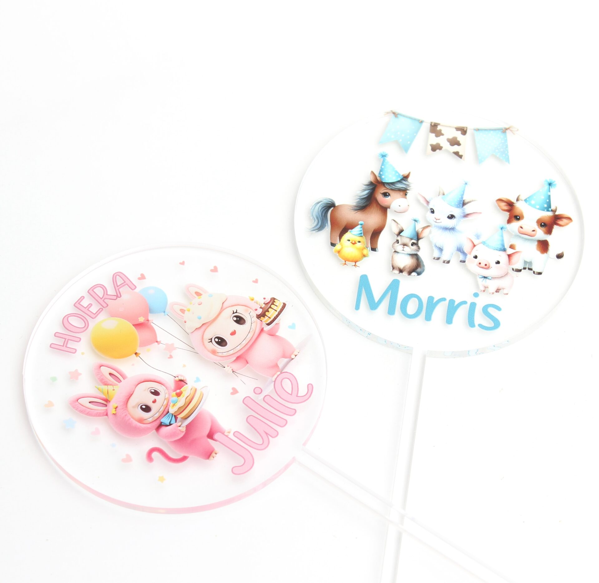 De toppers zijn voorzien van een naam, zonder leeftijd, zodat je de topper meerdere jaren kunt gebruiken. Wil je liever ook een leeftijd erbij? Vul dan bij de naam ook de leeftijd in, bijvoorbeeld: Morris (3 jaar). De leeftijd wordt hierbij klein onder de naam gezet.