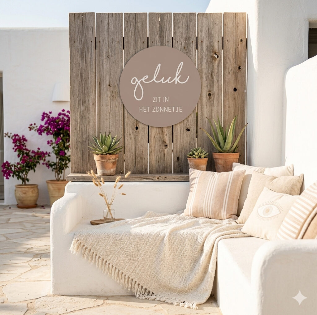 De cirkel is gemaakt van Dibond en kan het hele jaar buiten blijven hangen.