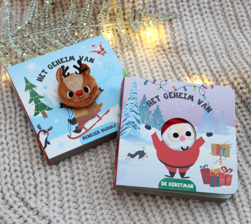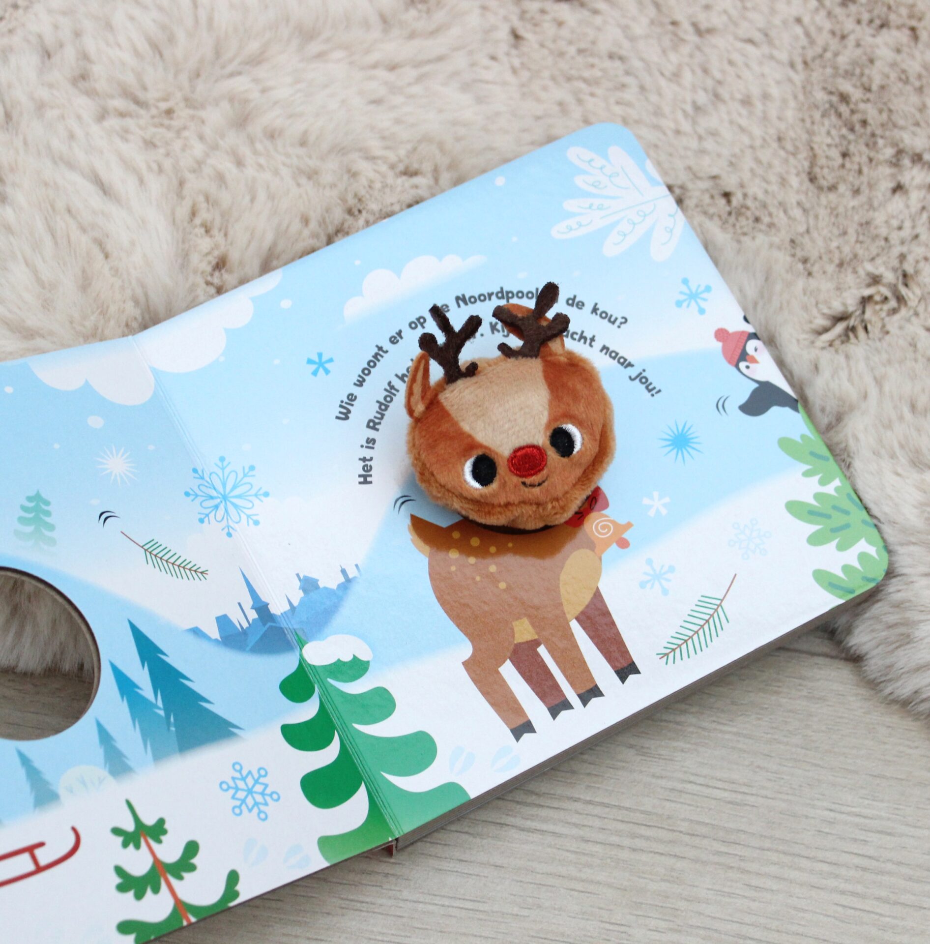 Een super vrolijk Kerstboekje met een vingerpopje van het rendier. Duw een vinger in het vingerpopje en laat het hoofdje bewegen als je het boekje voorleest.