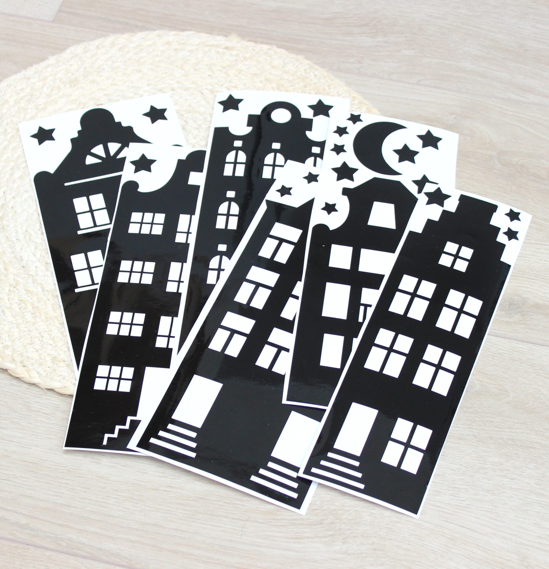 Maak met grachtenpanden of huizen een sfeervol raamstraatje en vul dit aan met uitbreidingen die je zelf leuk vindt. Hoe meer uitbreidingen, hoe breder en voller je het raam kunt versieren.